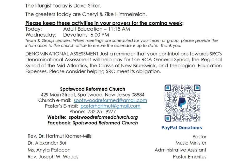 Spotswood Reformed Church is a congregation of the Reformed Church in America. Historically, the denomination has its roots in the Protestant Church of the Netherlands. It was organized in 1628 in New York City then New Amsterdam. The Spotswood congregation was founded in 1821 and has been a community church ever since. As Reformed Christians we believe in the lordship of Christ in all matters of life. Faith development and inclusive worship services form the basis for a variety of charitable ministries. Woodmere Senior Housing and Pixie Preschool were started by our church in order to address specific needs in the community. Today, we are a vibrant church family with an open and loving attitude. Our members come from communities like Spotswood, Helmetta, East Brunswick, Old Bridge, Jamesburg, and Monroe.