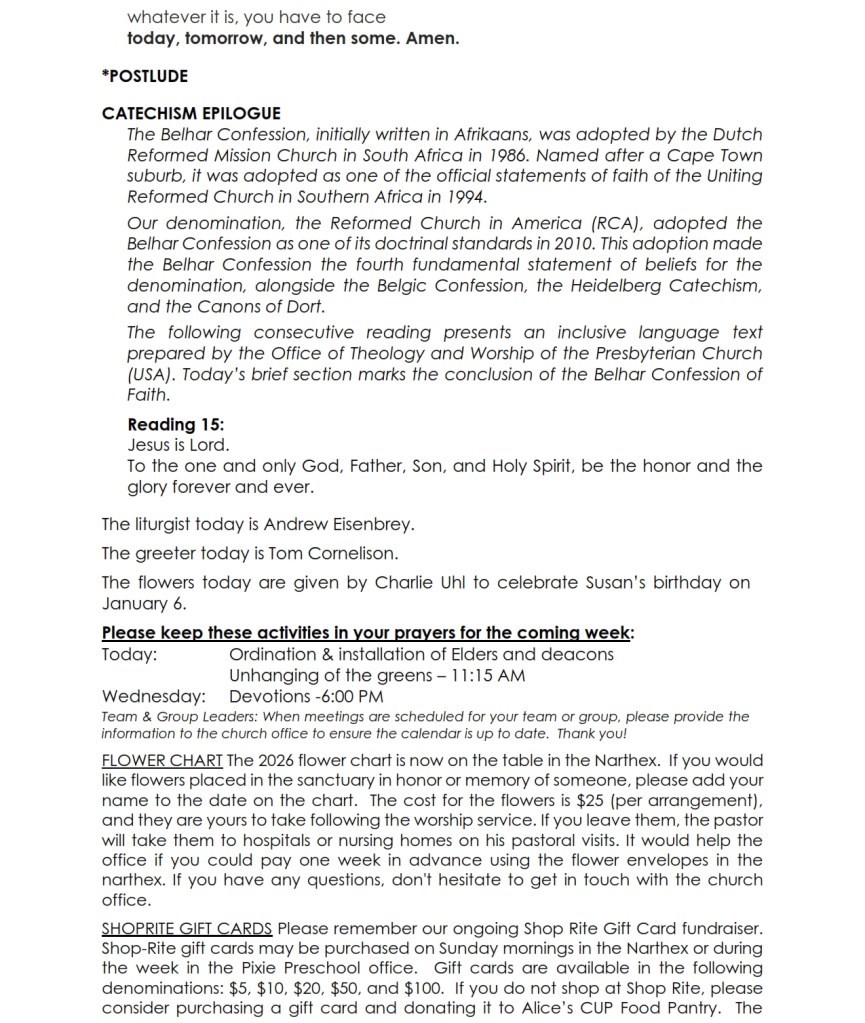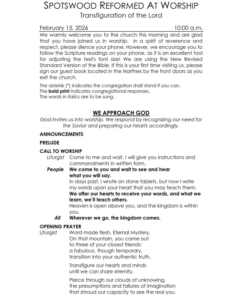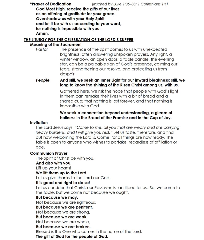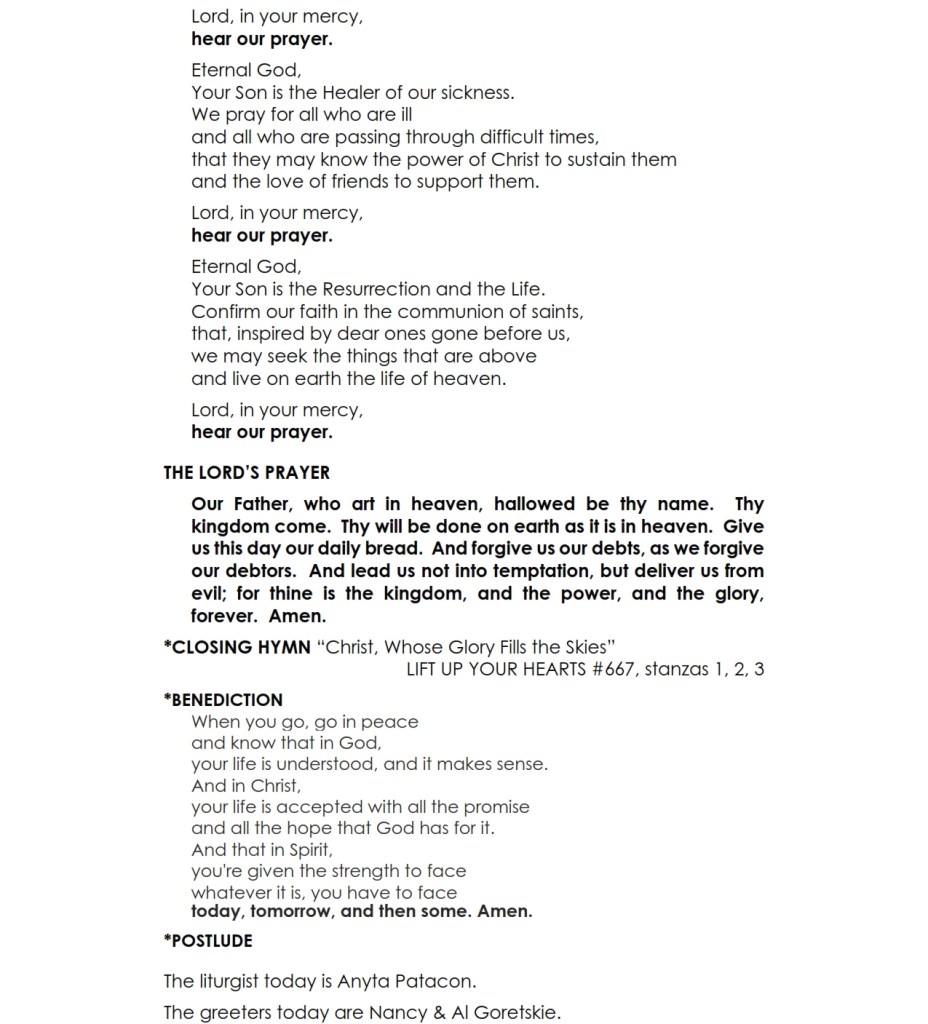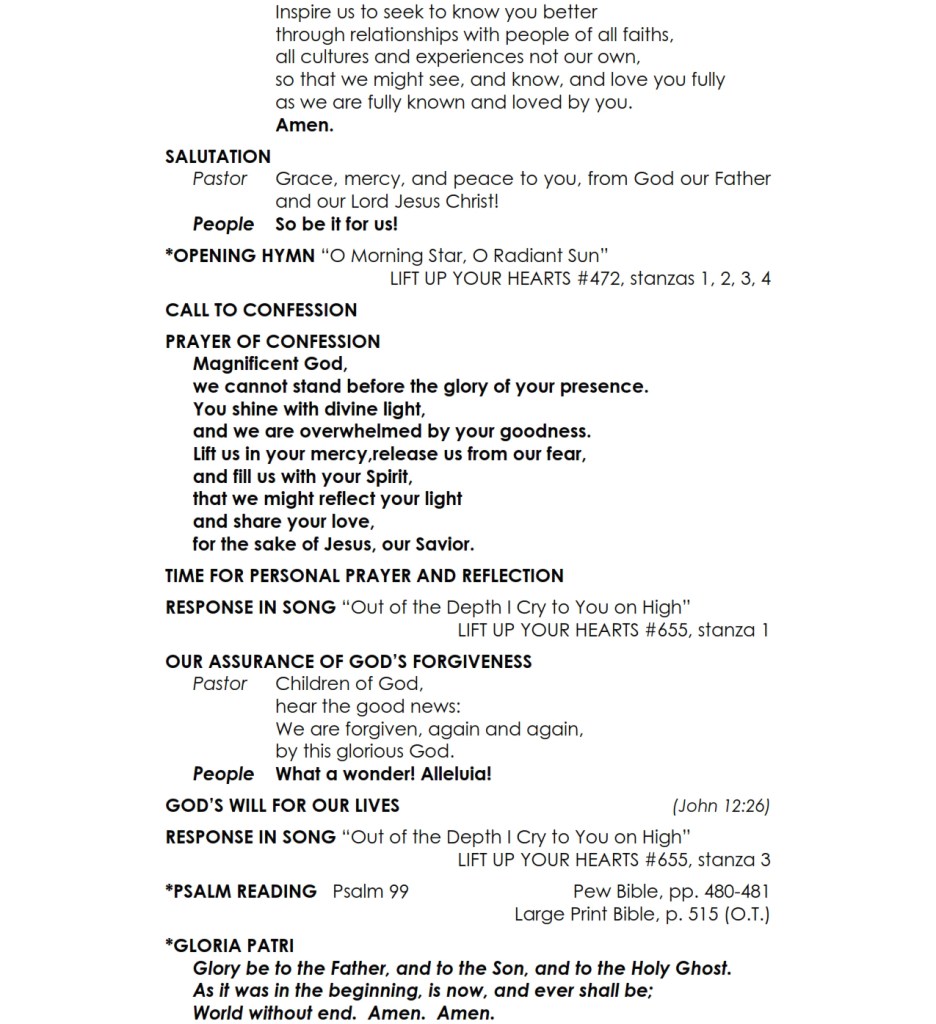 The Worship Bulletin for service is below.