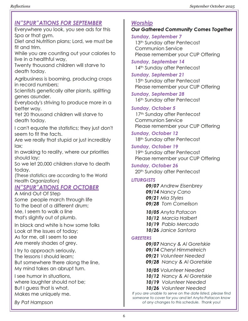 Drawn to Christ and led by the Spirit, we create community, equip disciples, and engage in Mission.
