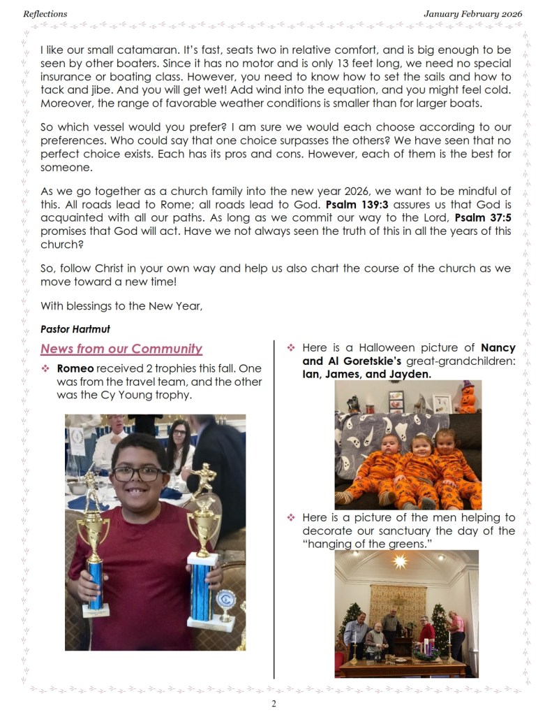 Drawn to Christ and led by the Spirit, we create community, equip disciples, and engage in Mission.
