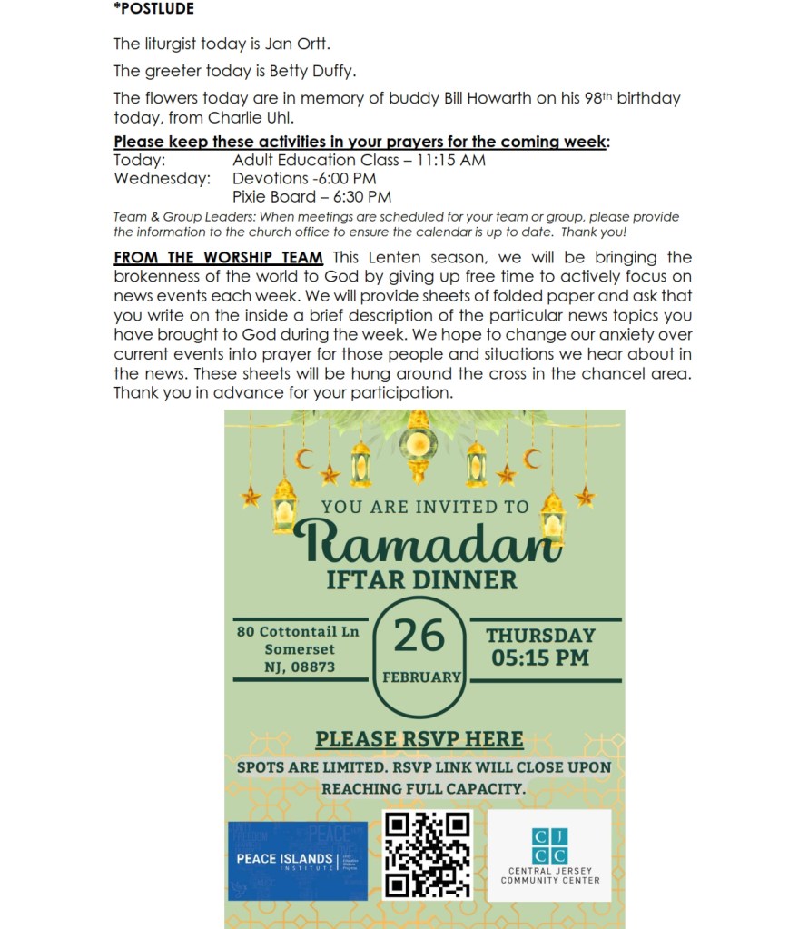 Join Us for Facebook Online Worship Ash Wednesday Service February 18 at 7:00 pm.